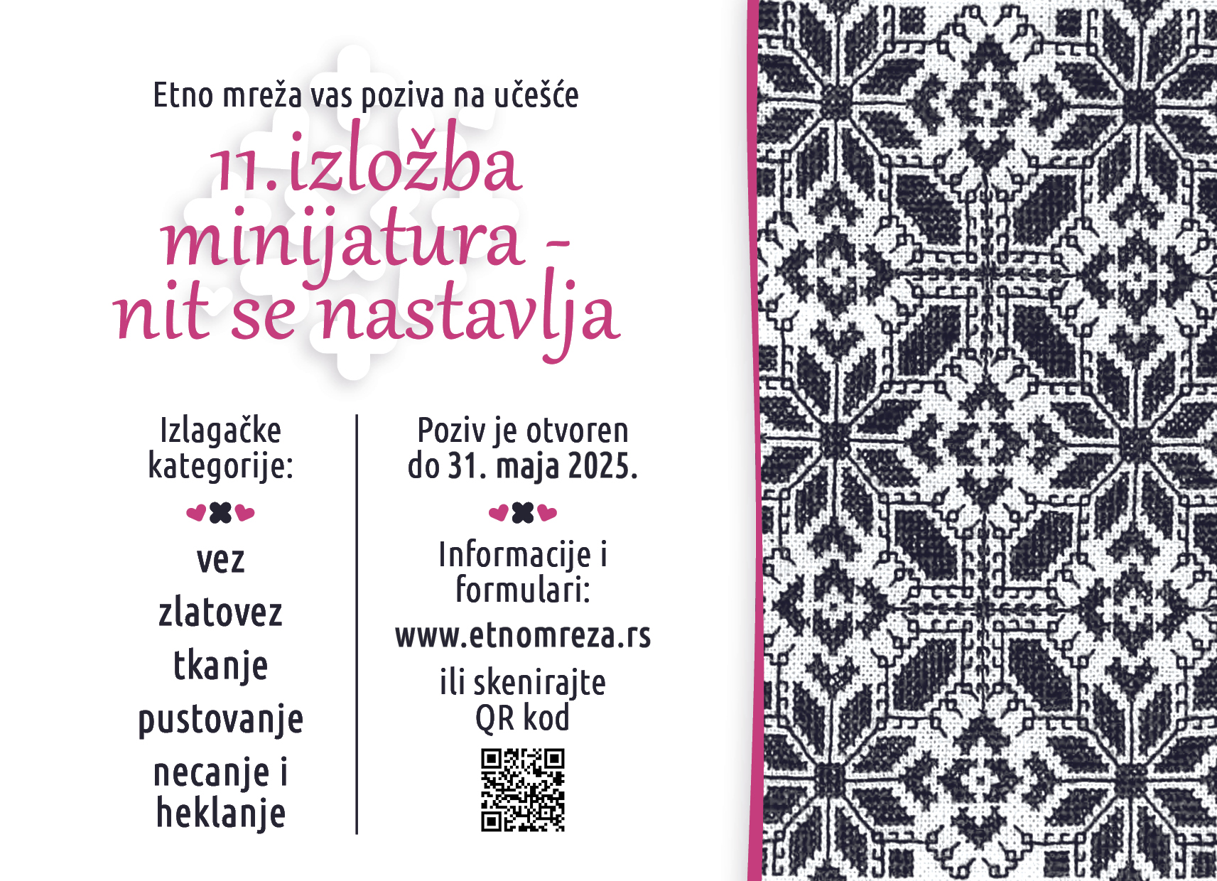 Minijatura je figuralni ili floralni prikaz malog formata izrađen u različitim tehnikama. Minijature Etno mreže kao eksponati žirirane izložbe pod nazivom „Sto žena – sto minijatura“, autentičnim motivima spajaju umetnost i veštinu, tradicionalno i savremeno, individualno i kolektivno, i odišu zaboravlјenim duhom narodne umetnosti.