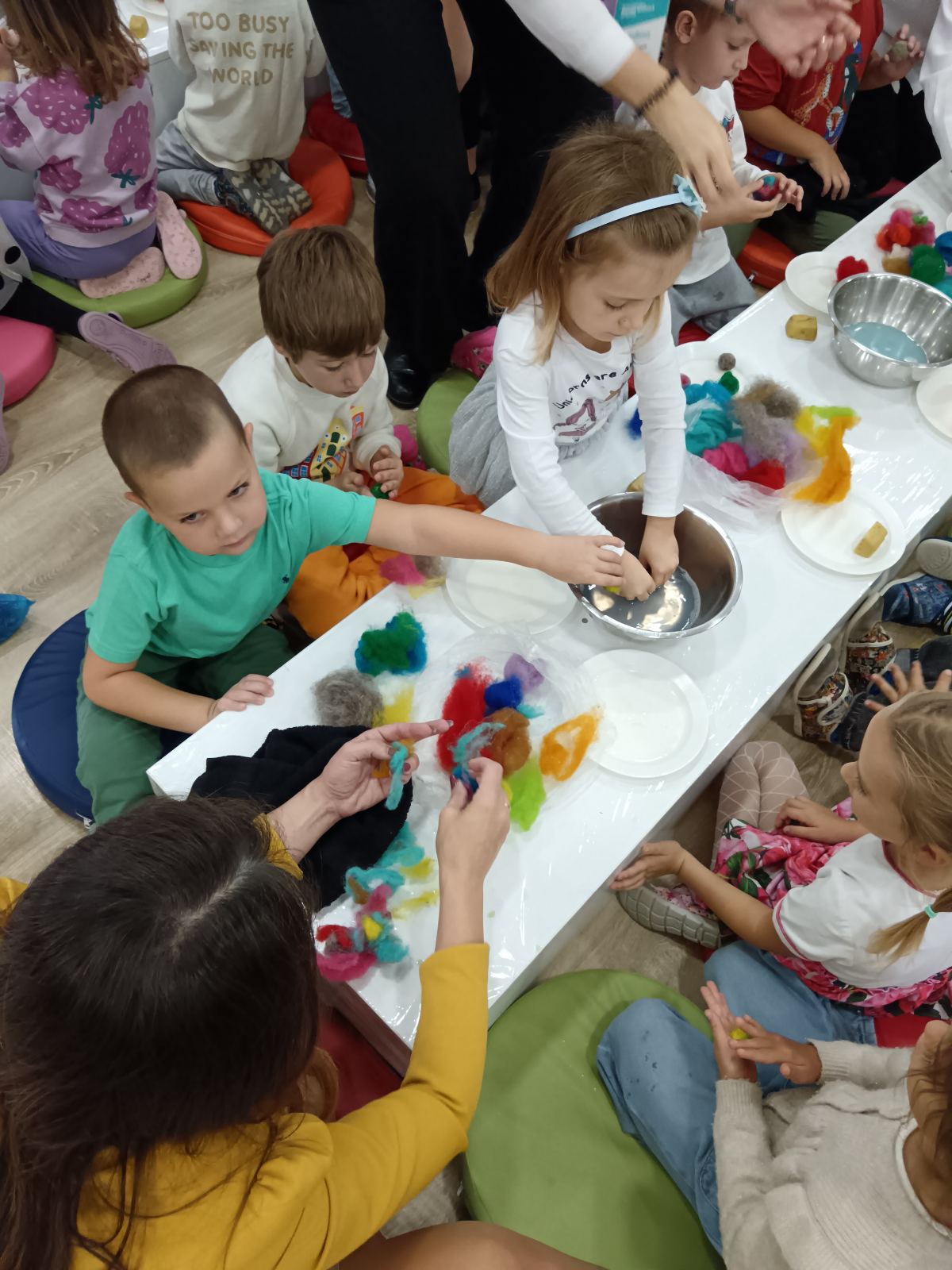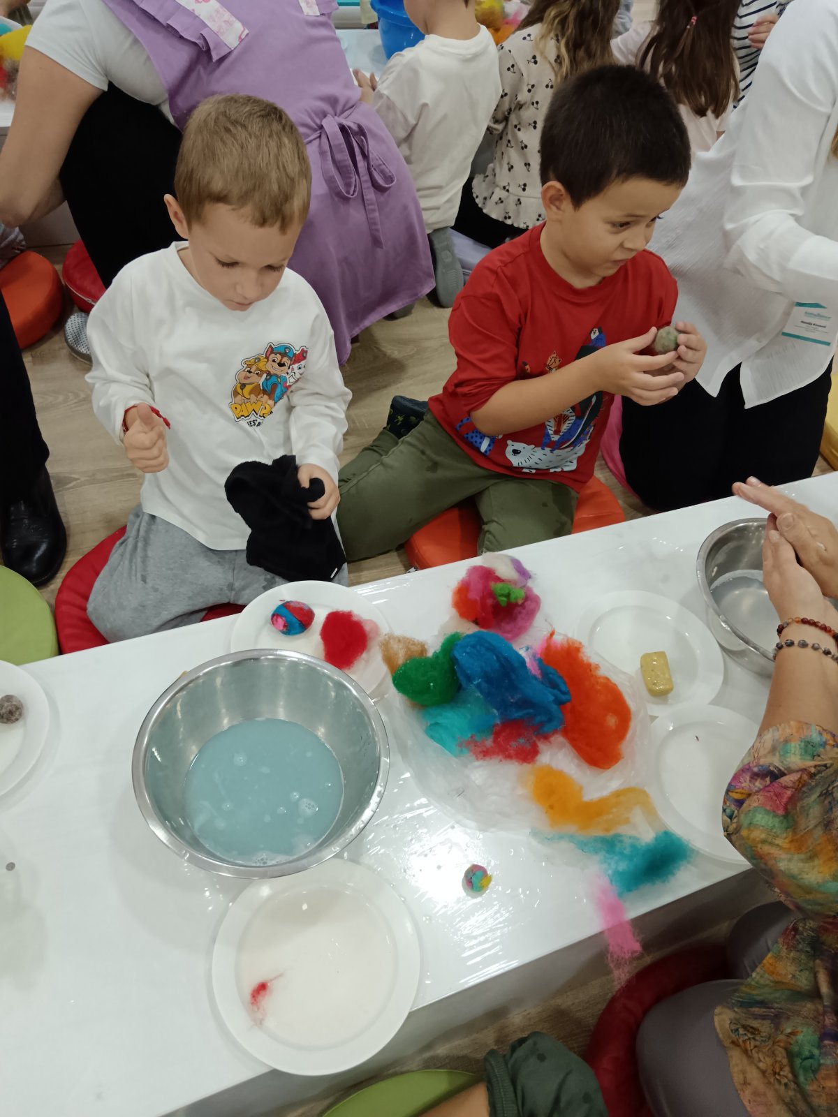 U okviru Dečje nedelje, učenici PU Baby Palace Anđela i Maarif International School imali su priliku da otkriju čaroliju tradicionalnih tehnika - mokrog pusta i tkanja na štapićima.