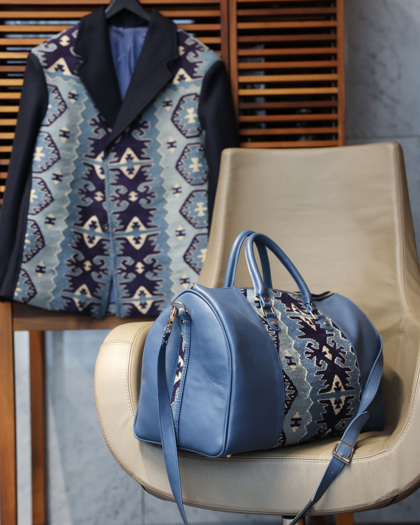 Jastučići za sedenje sa tkanim stilizovanim motivima sa naših ćilima kao vizuelnih simbola koji rafiniranom izradom i dizajnom prevode zanatstvo u kulturnu diplomatiju. Geometrijski i cvetni motivi na ćilimu po narodnom verovanju imaju isceljujuća dejstva.