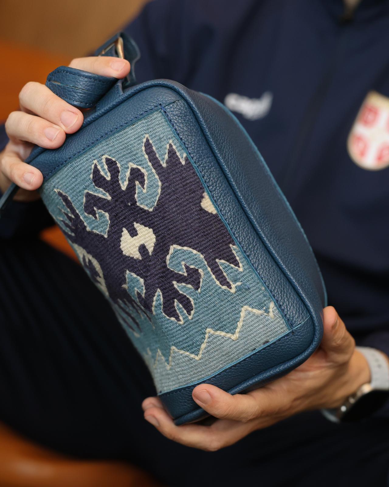 Ovaj model pastirske torbe nastaje tkanjem na ručnom razboju u tehnici klečanja kojom se izrađuje centralni motiv kornjače ili prepoznatljivi geometrijski oblici sa naših ćilima. Dostupne su u različitim dimenzijama i bojama, tradicionalnih linija uz savremen dizajn. Pogodne za laptop ili veći teret jer su čvrsto tkane sa izdržljivim remenom od upletene vune, kićankama na ivicama i postavom od satena.