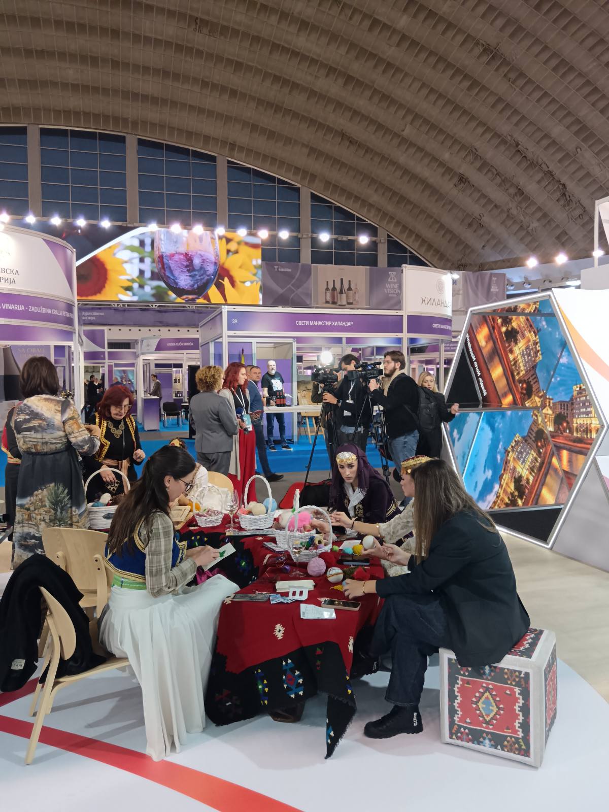 Kružni i četvrtasti podmetači izrađeni tehnikom pustovanja koja podrazumeva višečasovno trlјanje vune toplom vodom i sapunom. Nekada su ovom tehnikom izrađivani šatori, madraci, odeća, obuća, igračke i ukrasni predmeti koji su bili ogledalo bogatstva porodice i broja ovaca, naročito kod naroda u planinskim područjima. Pored cveća i geometrije, motivi zastuplјeni na podmetačima su preuzeti sa dekorativne plastike manastira Hilandara.